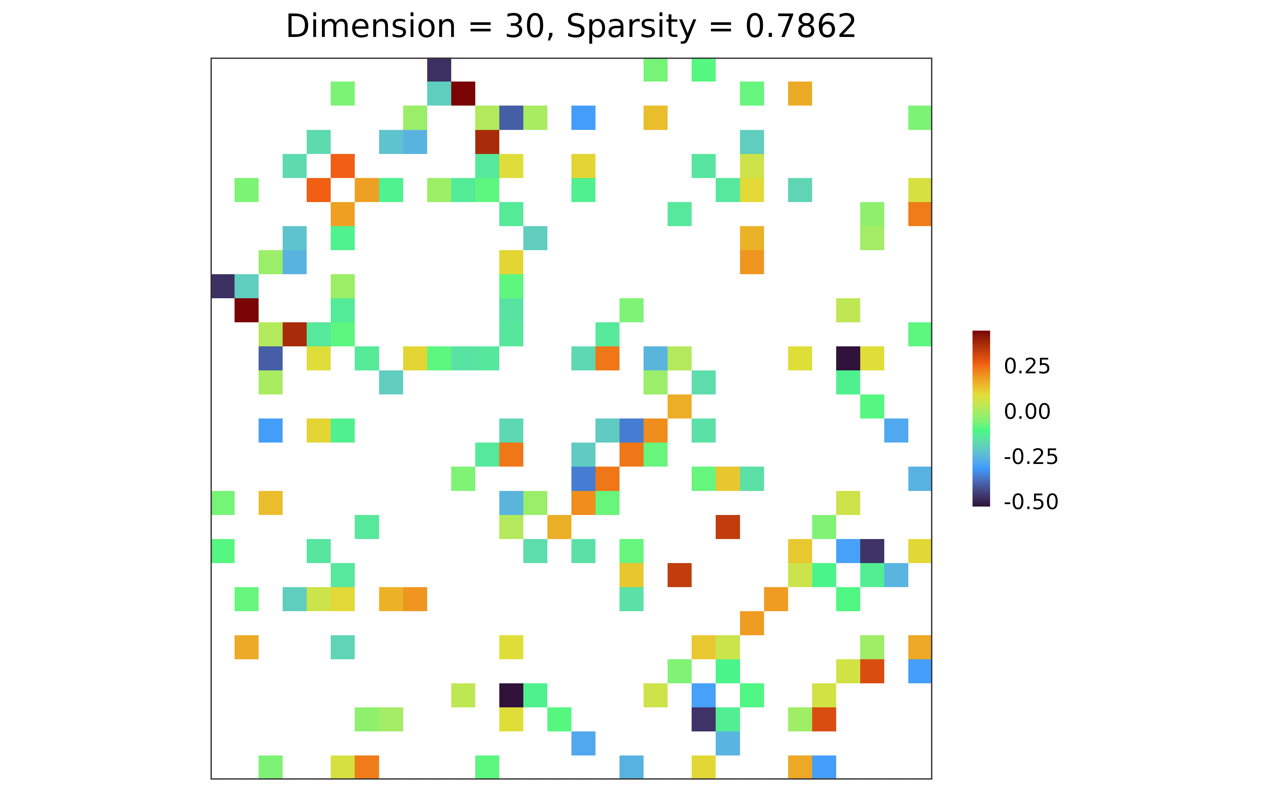 performance(hatOmega = prec$hatOmega, Omega = sim$Omega)